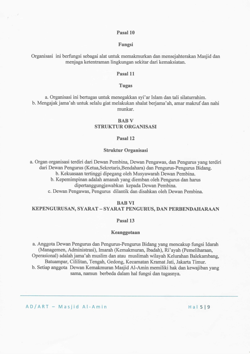 AD-ART Masjid Al-Amin - Condet, Jakarta
